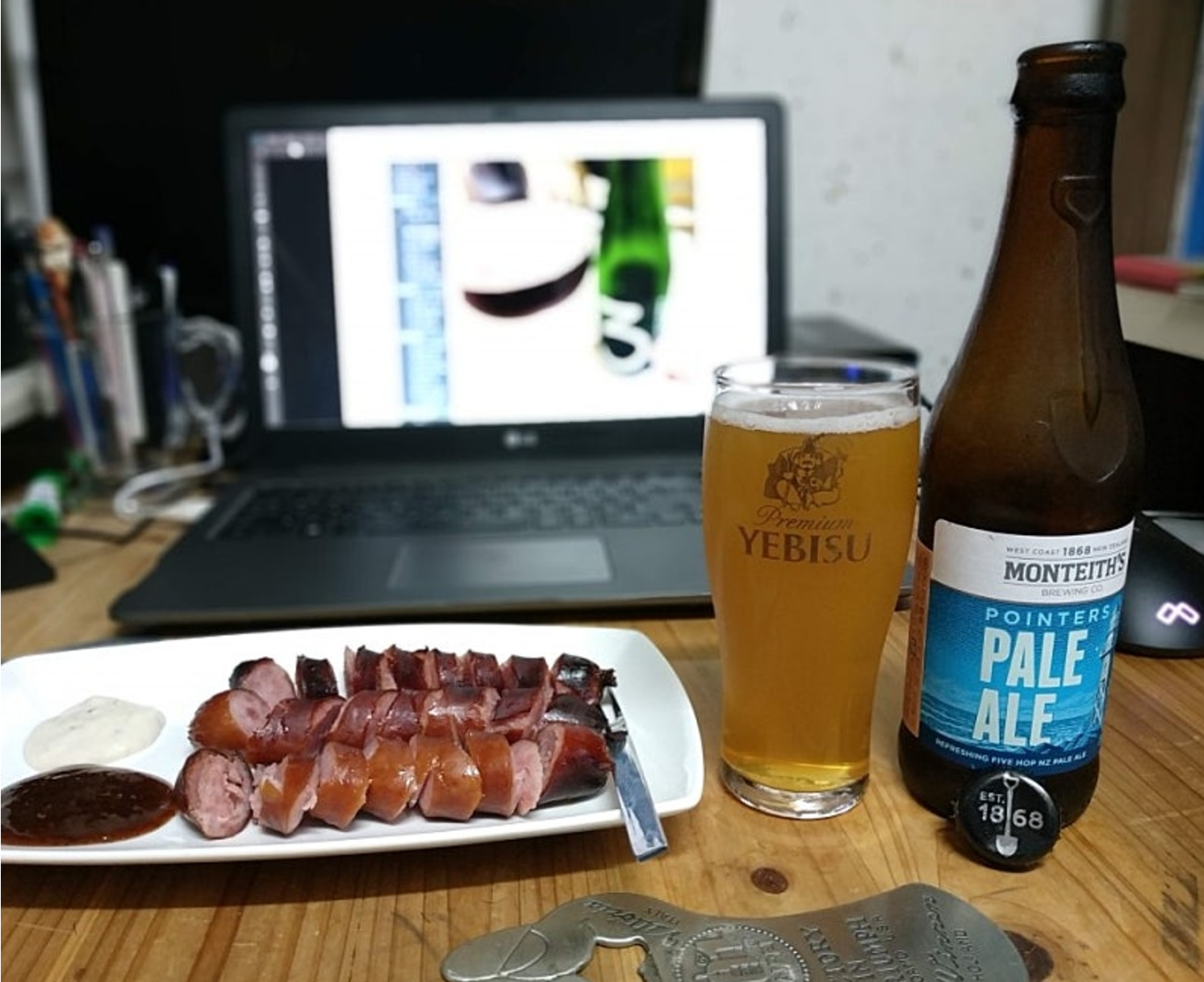 그래서 오늘은 몬티스 3종을 시음해보기로 하고 안주도 명품 소세지인 잔슨빌 소세지를 구워놨습니다.